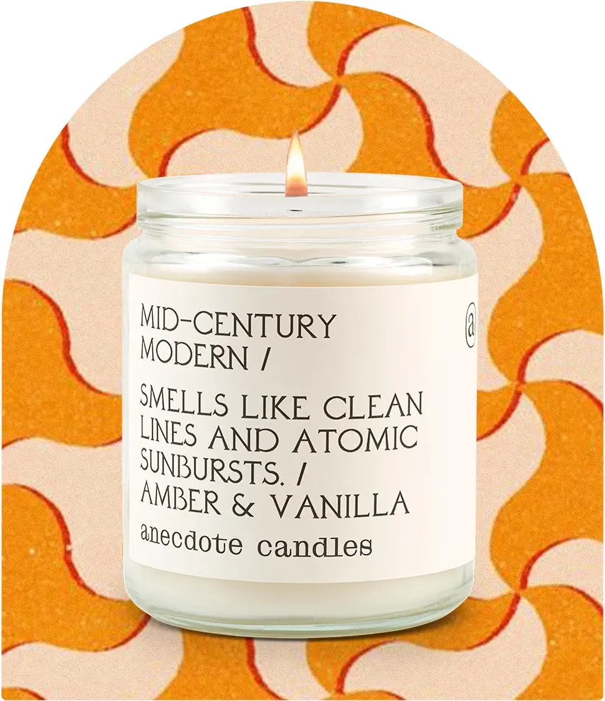 Mid Century Modern Candle - Warm and complex, a rich woody base is topped with lively floral and citrus notes. Much like the subtle pops of color that defined living room pieces of the era, hints of lavender, jasmine, and orange add contour to this candle