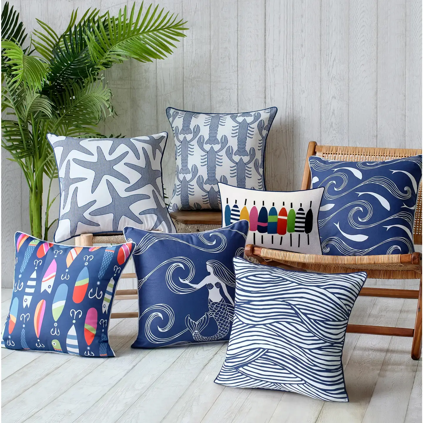 Canvas Indoor/Outdoor Waves Throw Pillow 20" (w. Insert)