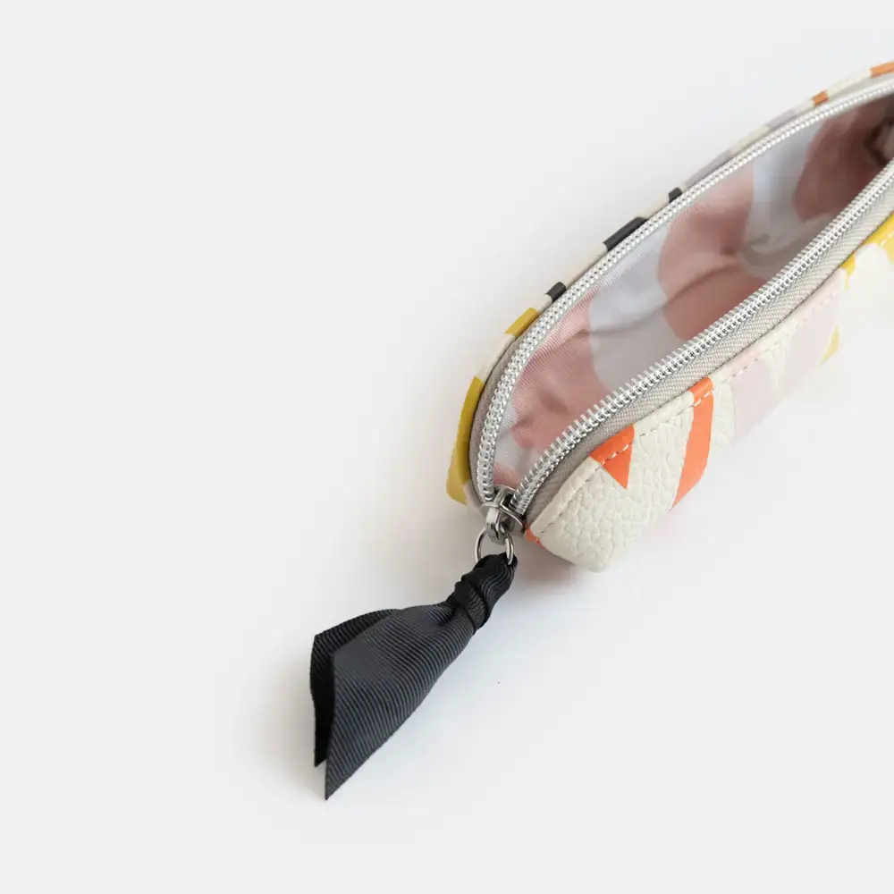 Multi Checkmate Hearts Pencil Case - Add some love to your stationery storage! This slim shaped case comes complete with striped lining, silver zip and black grosgrain pull, and is the ideal size for stationery as well as make up brushes and mascara.