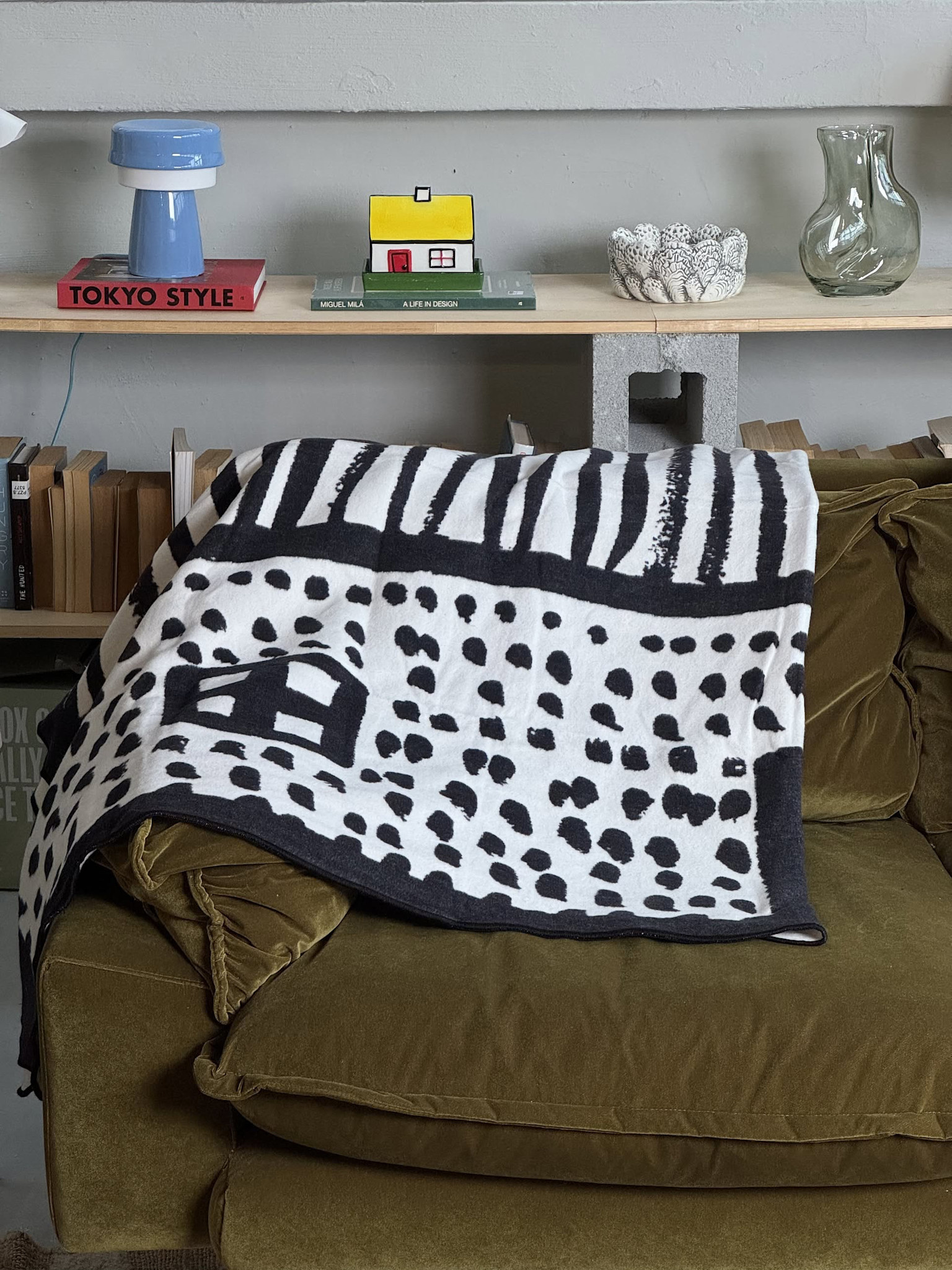 Cotton House Shaped Trow Blanket - There's no place like home! Add a touch of cheeky charm to your sofa or bed with this 100% brush cotton blanket. Lightweight but cozy, this blanket will add a snuggly soft layer to any home.