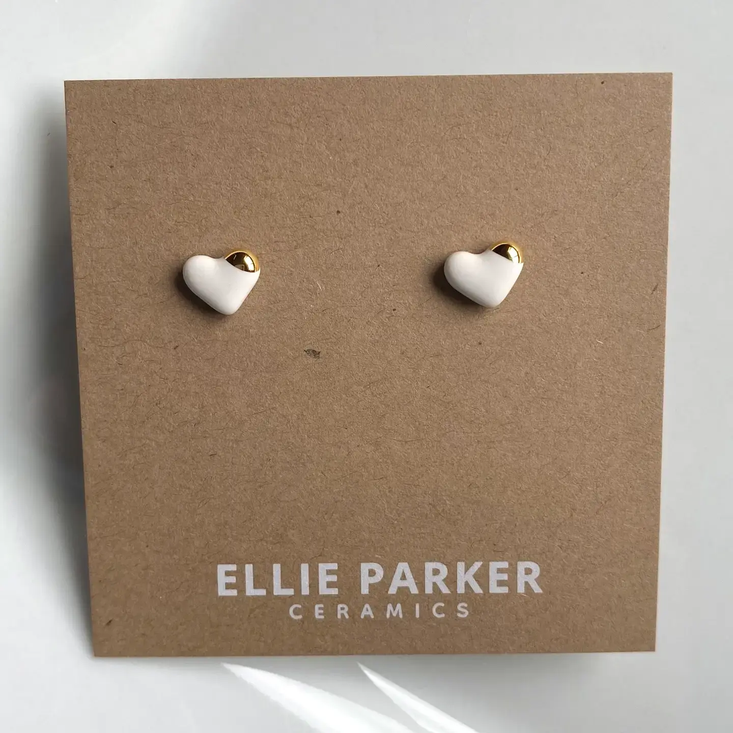 Ellie Parker Ceramic Heart Studs White/Gold
