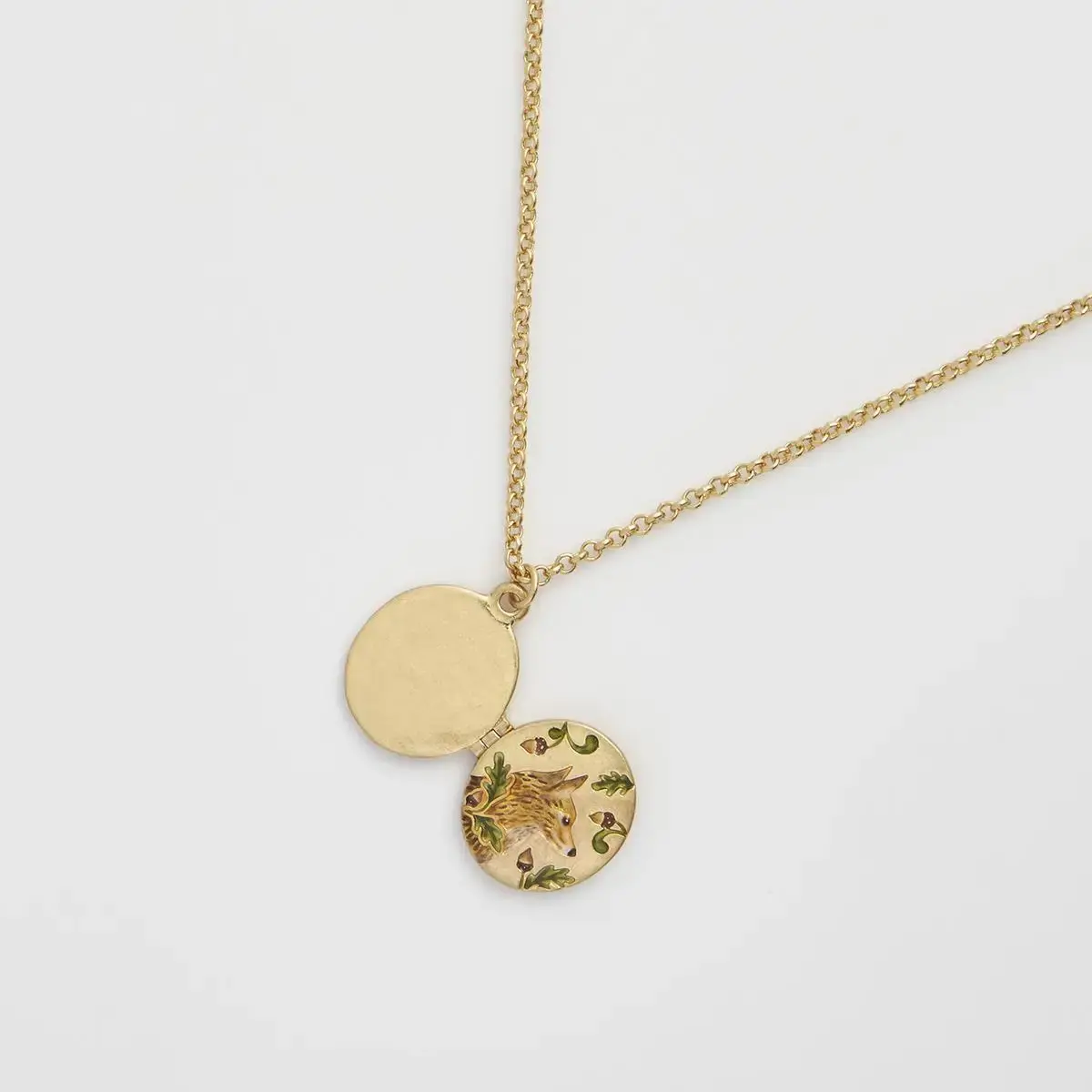 Fable Fox & Acorn Handpainted Locket Necklace