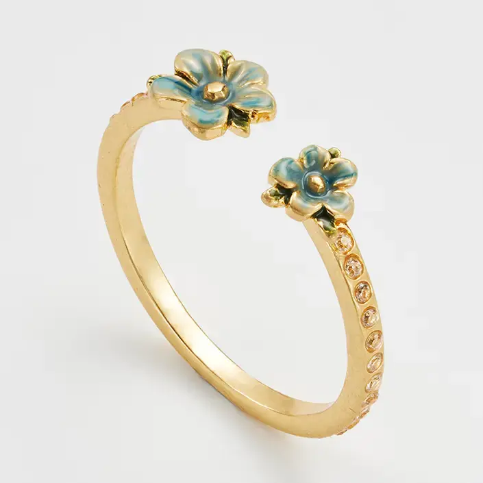 Fable Handpainted Forget Me Not 22ct Gold Plated Ring