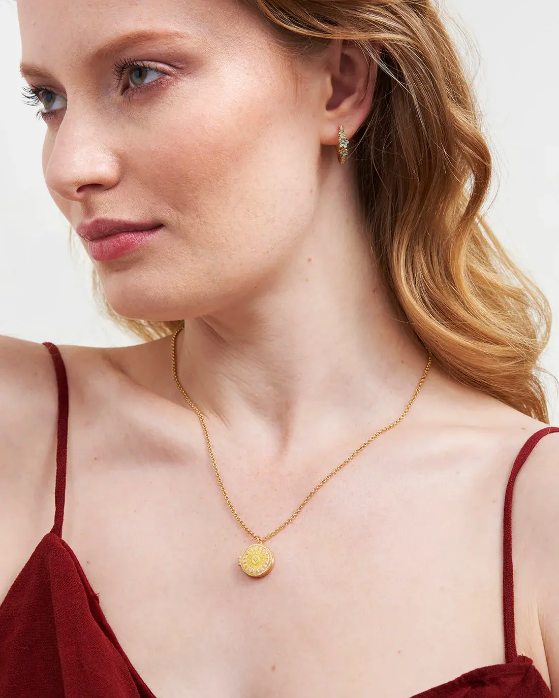 Fable Handpainted Gold Sun Locket Necklace