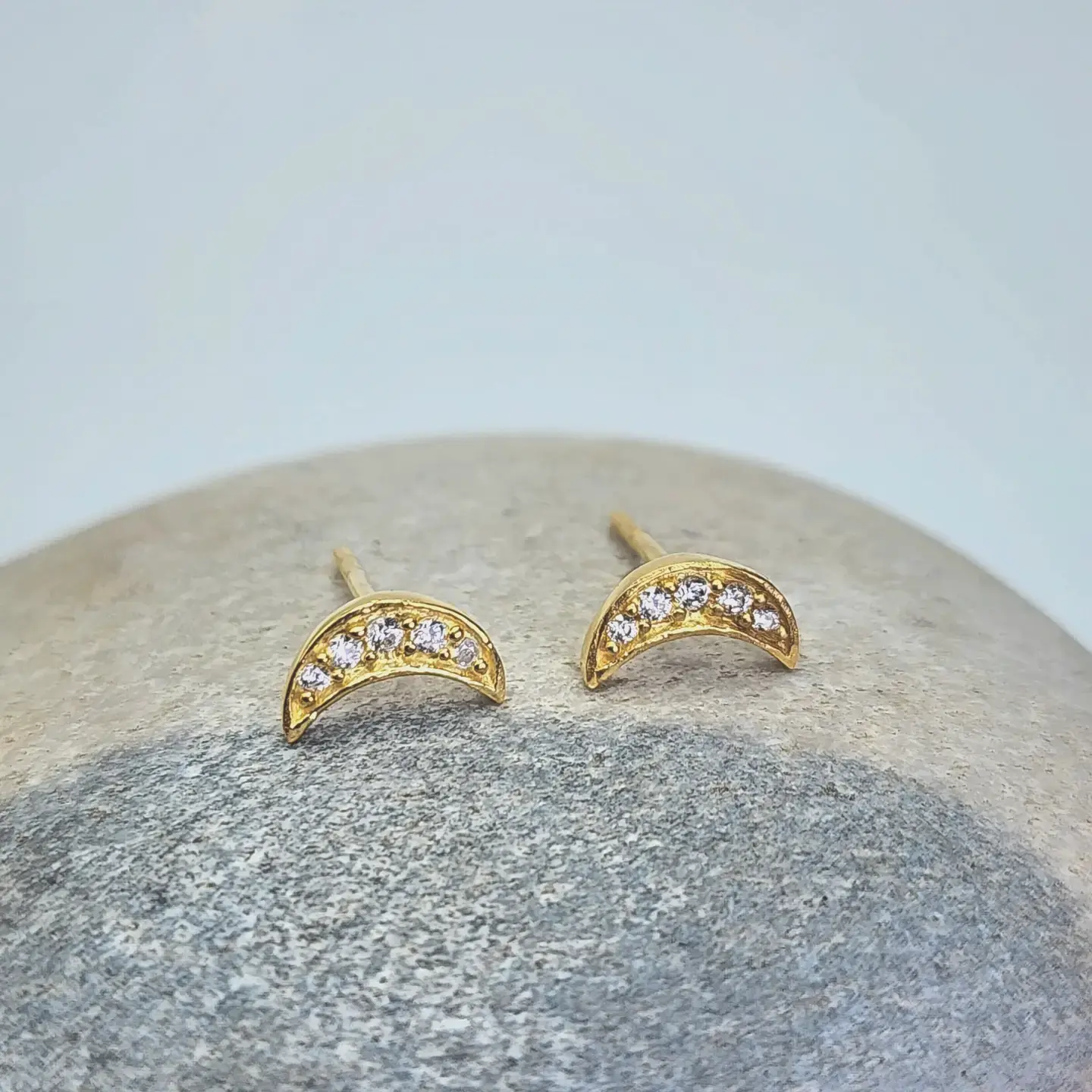 HL Crescent Moon Earrings Cubic Zirconia 14k Gold Vermeil