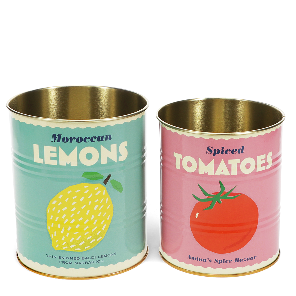 Medium Lemon Tin - Featuring a delightful retro-style lemon print, inspired by vintage brand food cans. Ideal for organizing and displaying stationery, kitchen utensils, craft tools and more. Similar storage tins in other sizes are also available.