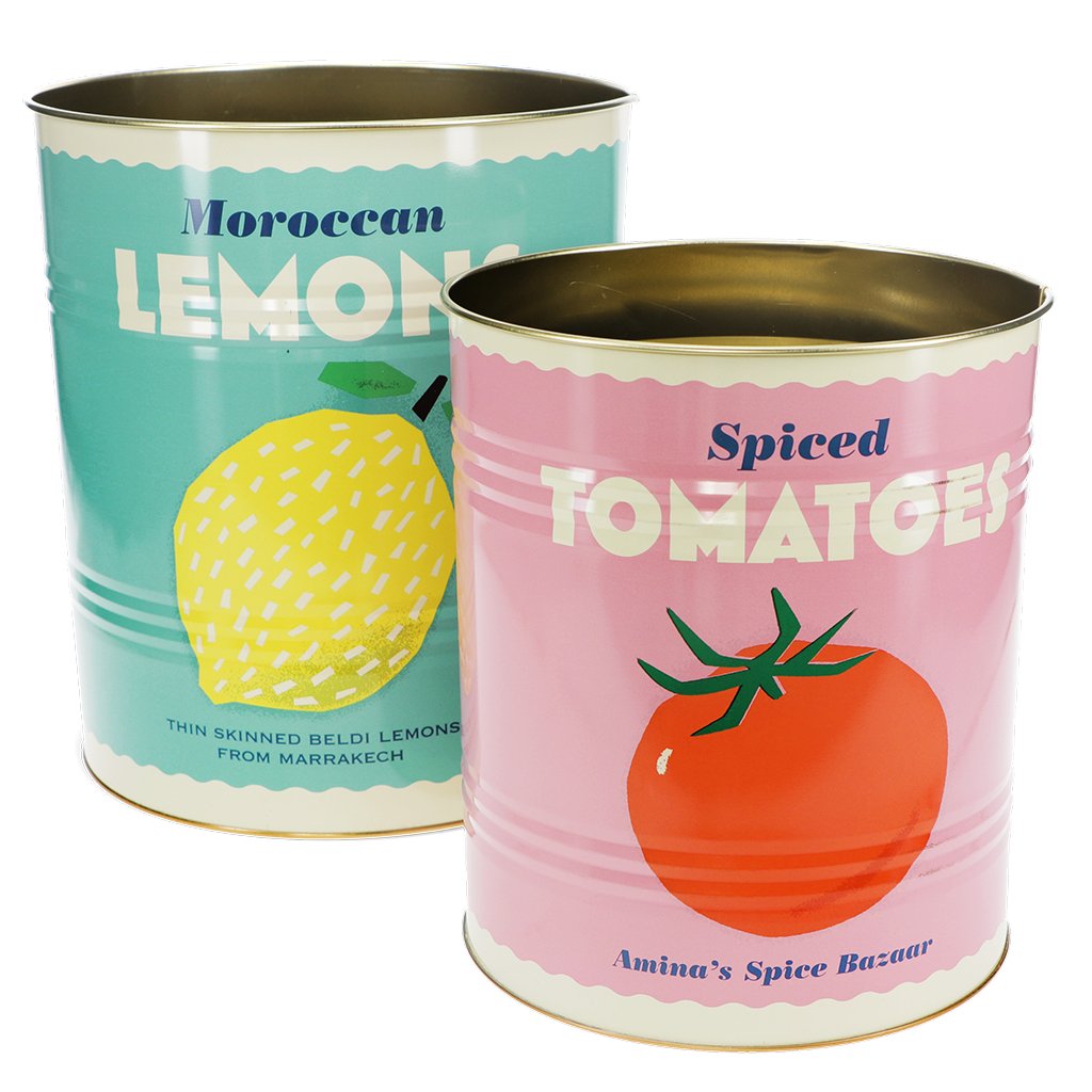 Large Tomatoes Tin - Featuring a delightful retro-style tomato print, inspired by vintage brand food cans. Ideal for organizing and displaying umbrellas, plants or anything else you fancy. Similar storage tins in other sizes are also available.