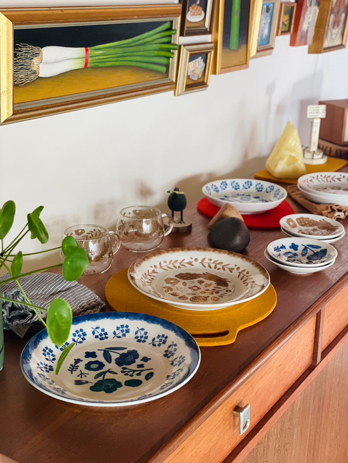 Nordic Plate Set - Bring some whimsical charm to your home with the Japanese nordic style porcelain series. With adorable blue florals and brown squirrels, these plates are sure to brighten your day! Search 'Japan Nordic' to see the rest of this series.