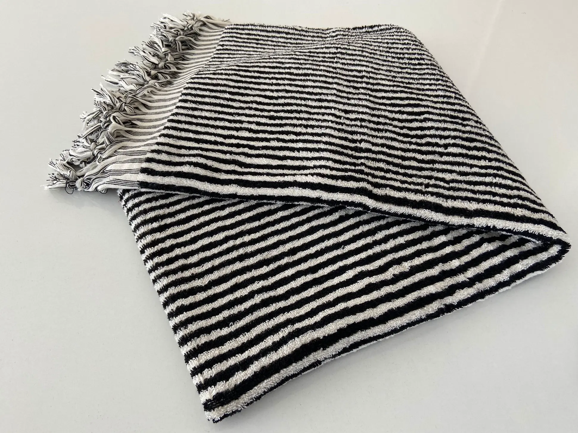 Black Stripe Turkish Cotton Bath Towel - Elevate your bathroom with luxurious towels that get even better with use. Loomed in Turkey, these 100% organic cotton Turkish bath towels are ultra-absorbent, super-soft and durable.