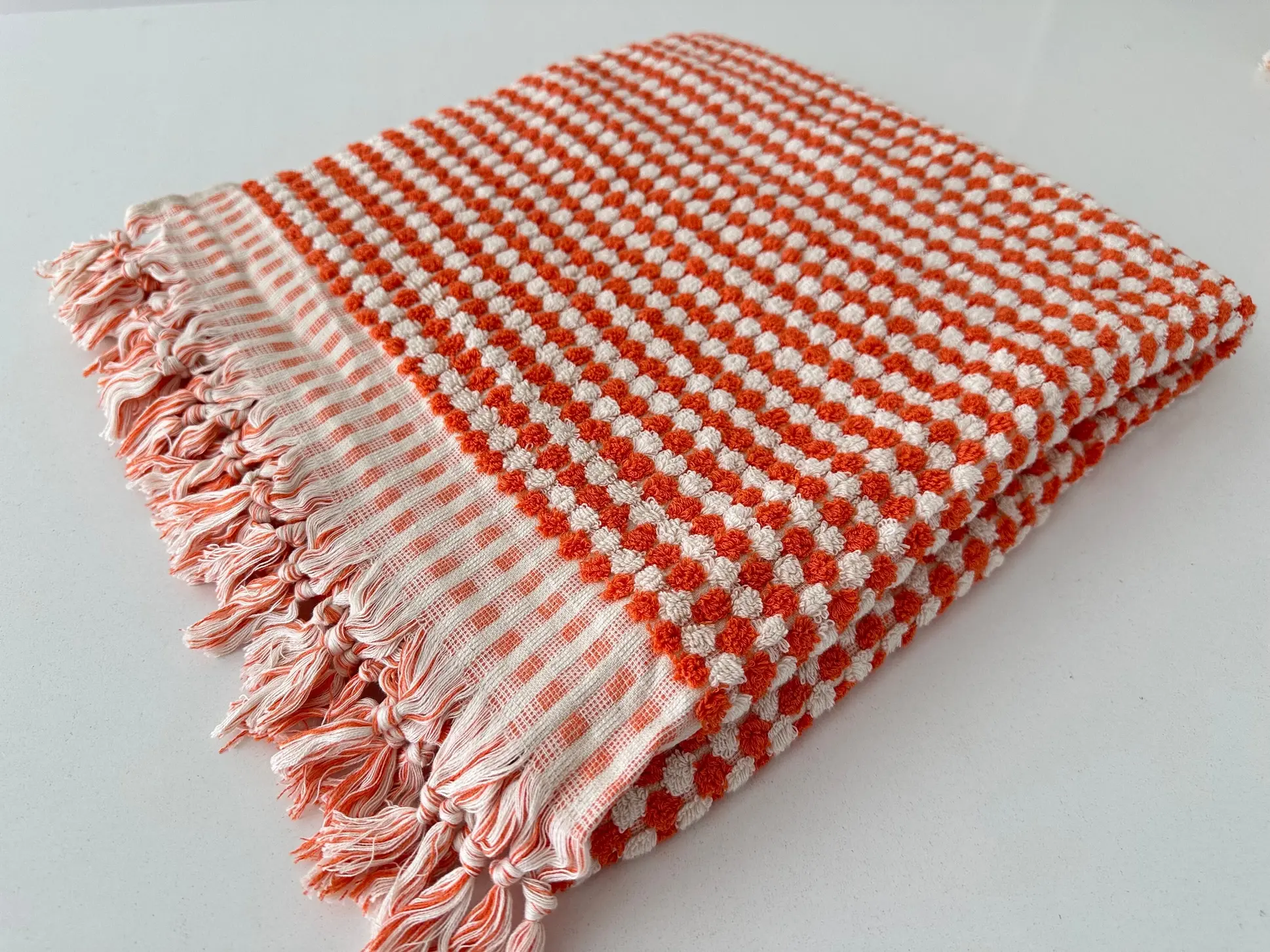 Orange Turkish Cotton Bath Towel - Elevate your bathroom with luxurious towels that get even better with use. Loomed in Turkey, these 100% organic cotton Turkish bath towels are ultra-absorbent, super-soft and durable.