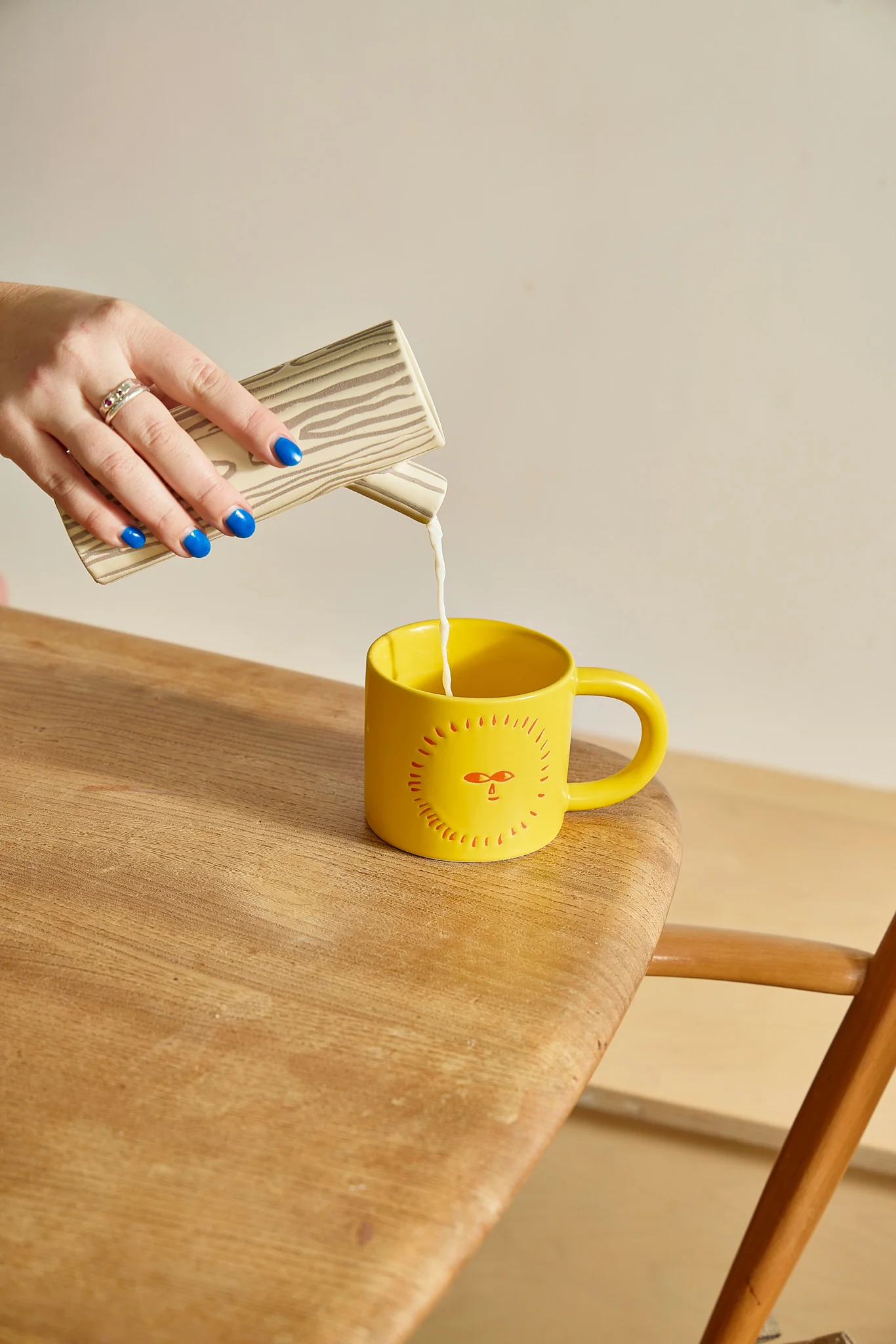 Good morning! Have your coffee in this sunshine-yellow mug to get your day off to a bright start. With two debossed smiling suns, this sturdy and tactile mug will sort you out with a sunny morning whatever the weather.