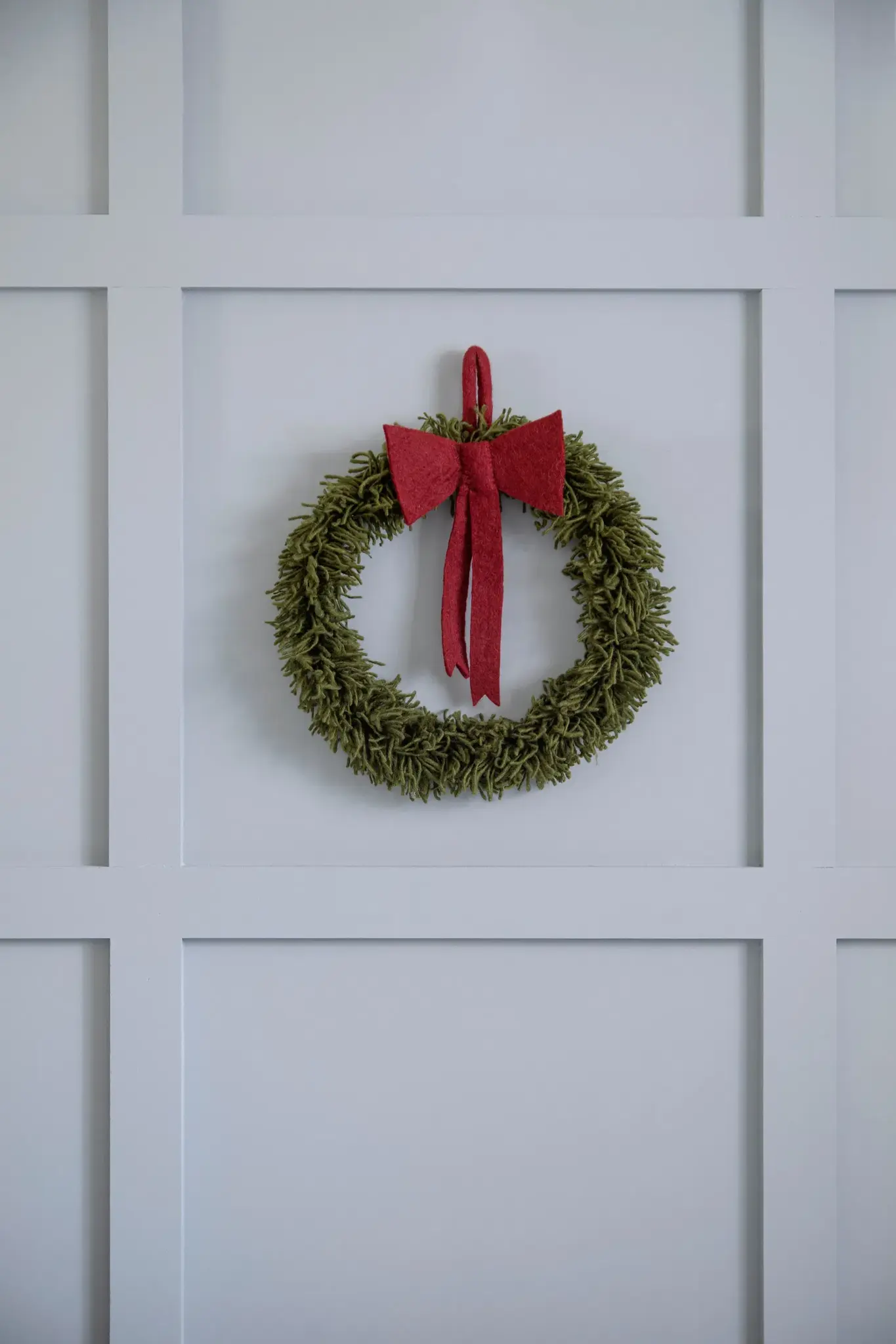 Bold and festive, this large wreath with a striking red bow is a statement piece for your home. Each detail is crafted with care, blending traditional holiday elegance with Scandinavian design. Fair Trade Certified. 30cm diameter.