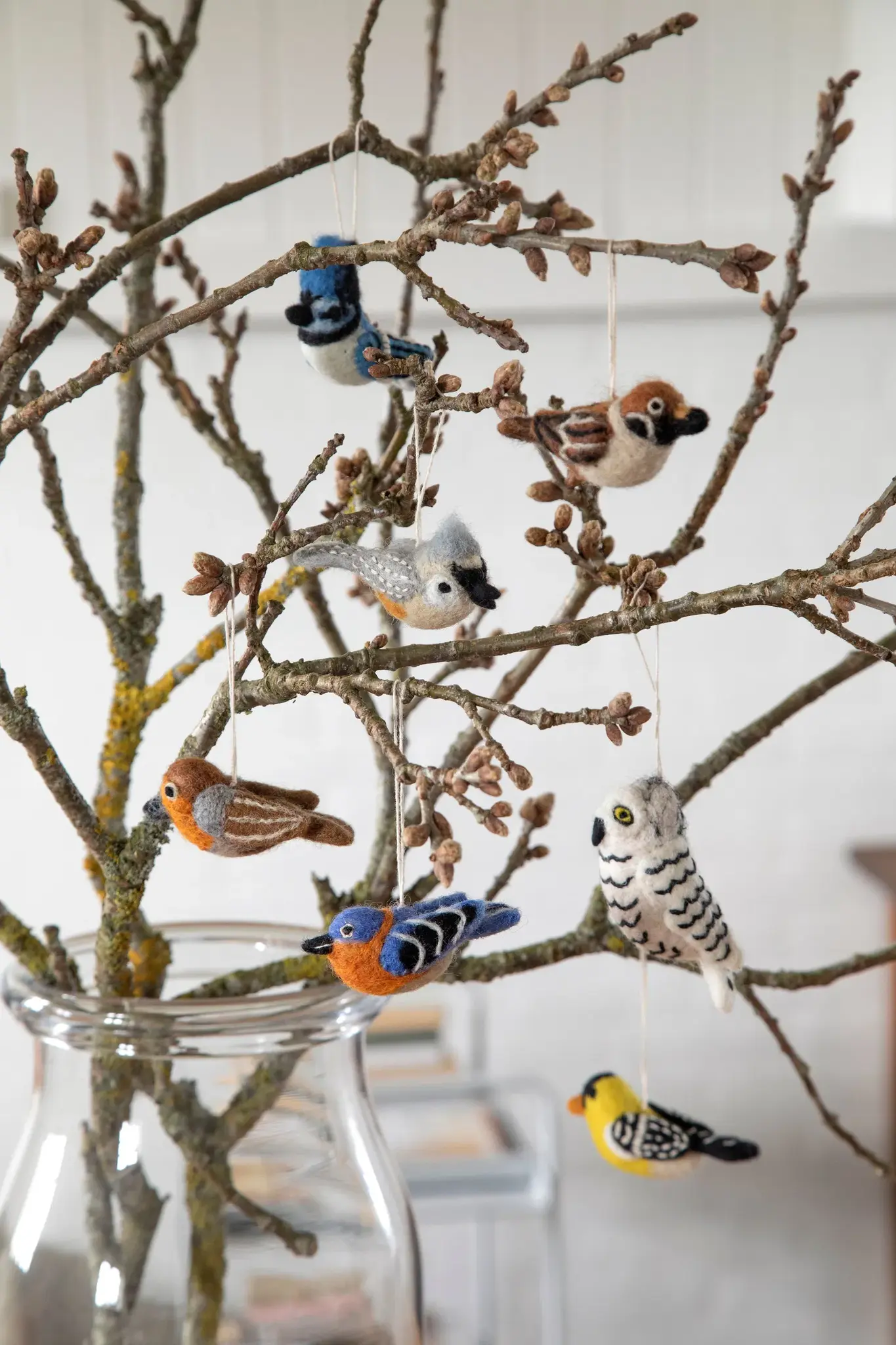 A snow owl, watching over your home with its soft, felted feathers. A majestic wintery touch. Designed in Denmark, Fair Trade Certified. Approx 8x4x3 cm.