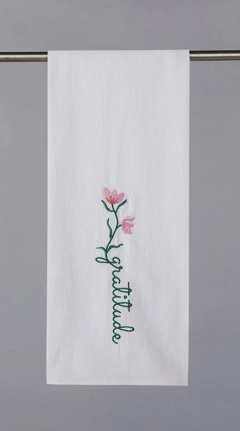 Embroidered Cotton Kitchen Towel - Gratitude