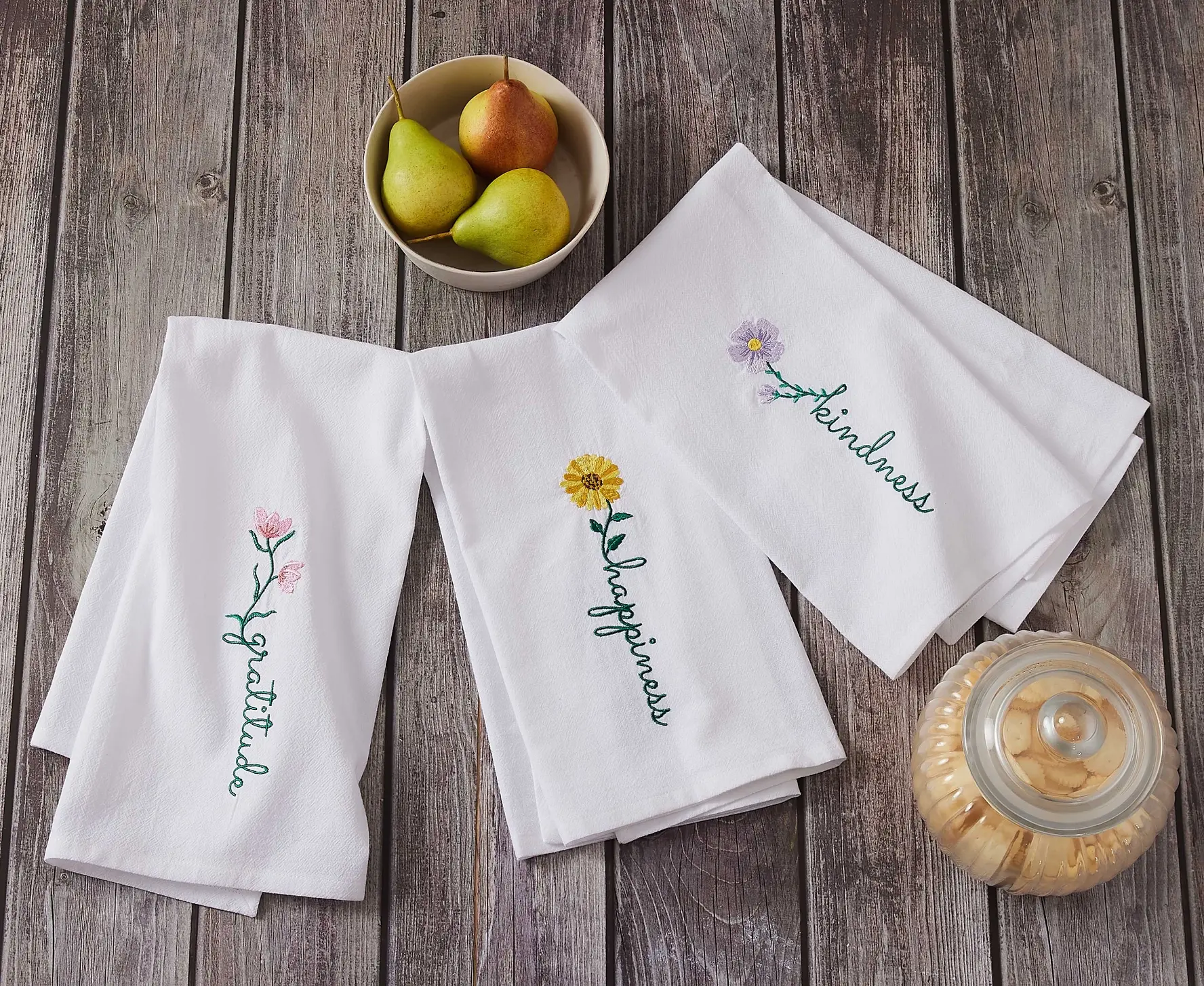 Embroidered Cotton Kitchen Towel - Kindness
