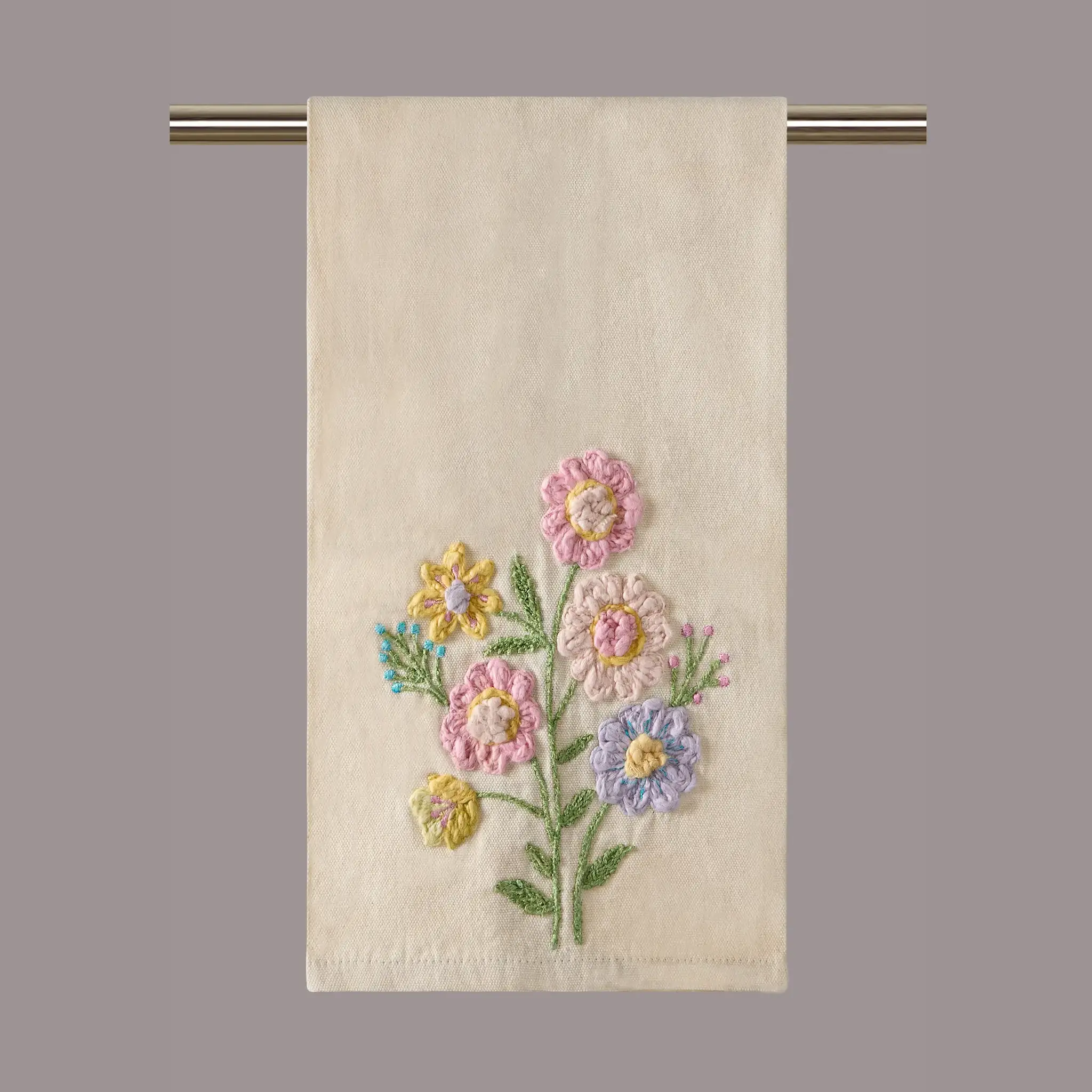Embroidered Cotton Kitchen Towel Spring Floral