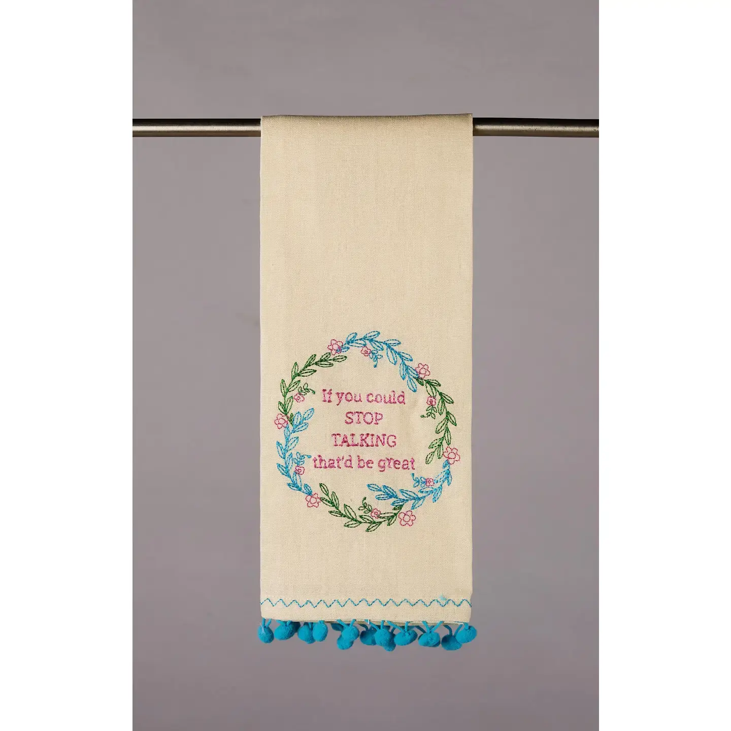 Embroidered Linen/Cotton Kitchen Towel Stop Talking
