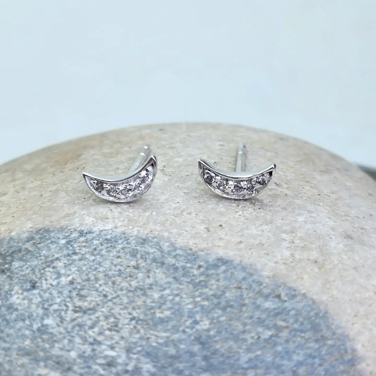 HL Crescent Moon Earrings Cubic Zirconia Sterling Silver