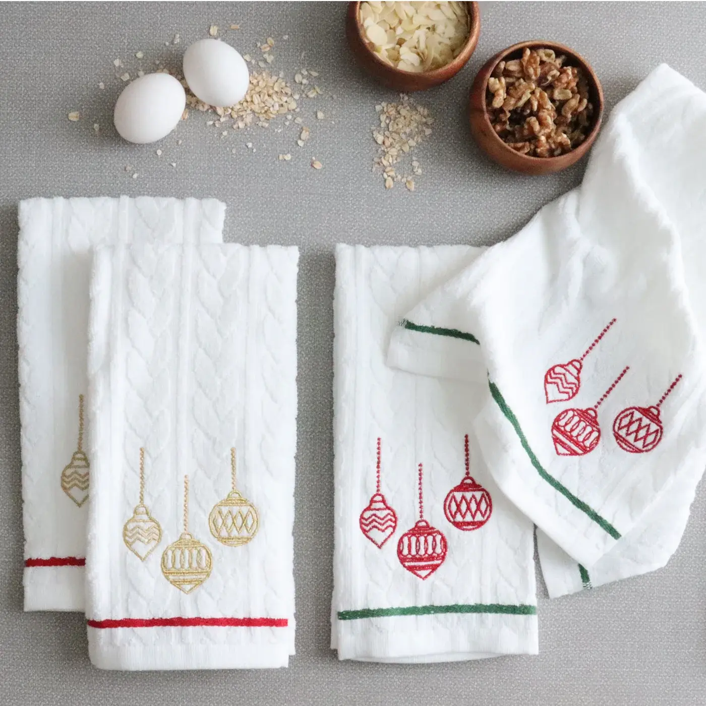 HMN Embroidered Ornaments Terry Towels S/2